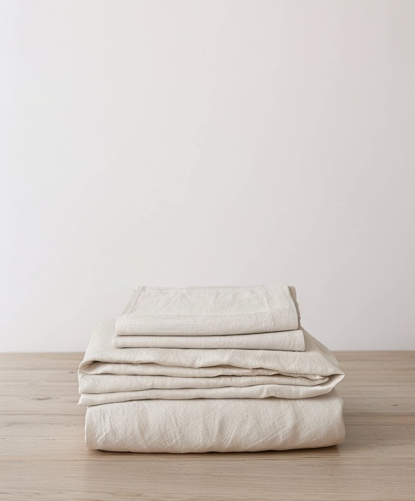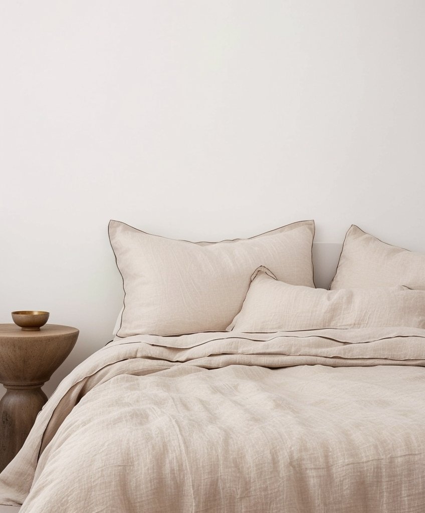 Wykonane w 100% z lnu tkanego z europejskiego lnu i wstępnie prane, aby od pierwszego dnia zachować miękkość i styl vintage. Poszewki na poduszki wykończone lamówką, a prześcieradło z lamówką u góry.