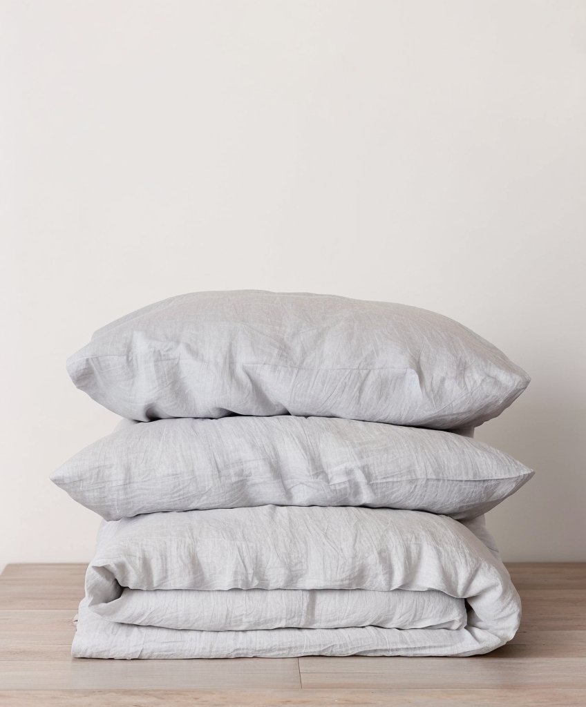 Każdy komplet poszewek na kołdrę jest wykonany ze 100% lnu, wstępnie wypranego dla zapewnienia miękkości, a zapięcie na guziki z masy perłowej sprawia, że pościel jest miękka.
