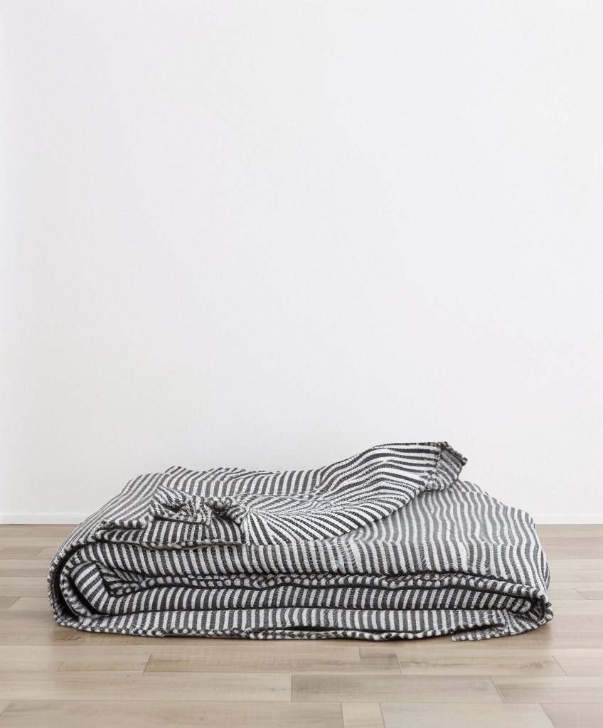 Dzięki wspaniałej, ciężkiej fakturze i grubej fakturze narzuta na łóżko Mira Linen może być używana jako koc latem lub jako dodatkowa warstwa wierzchnia zimą.